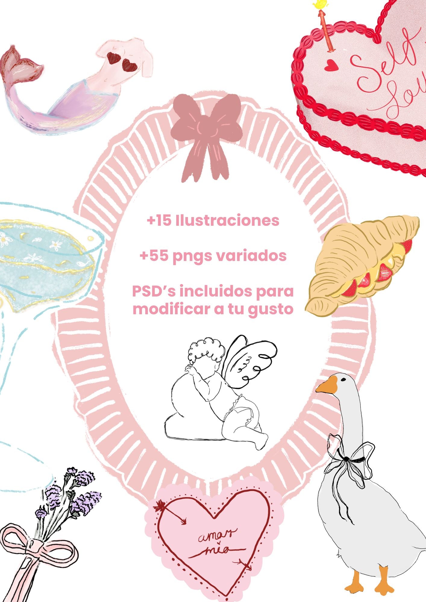 Colección de + de 15 ilustraciones para hacer tu papelería o recuerditos,